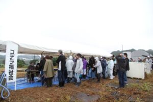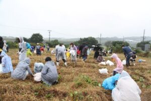 今年も収穫祭を行い、 サツマイモやサトイモなどを収穫しました。 天気には恵まれませんでしたが、 それでもたくさんの方に参加していただきました。
